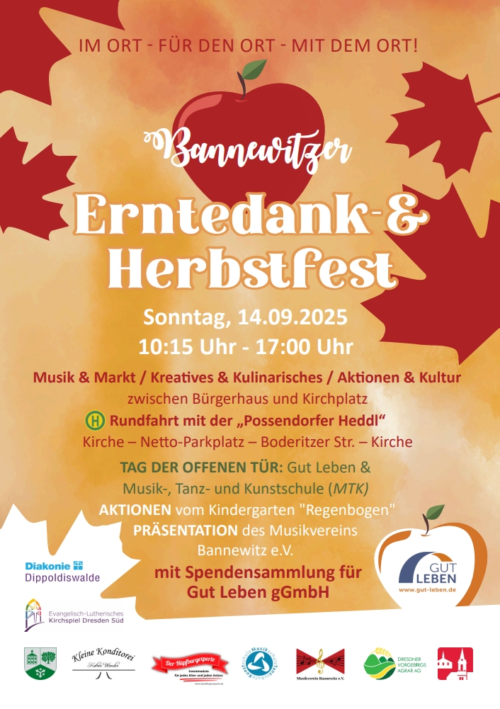 Die bunte Mischung des Festes traf den Geschmack der Bannewitzer. Viele äußerten den Wunsch, das Erntedank- und Herbstfest zu einer jährlichen Tradition werden zu lassen. Dies sehen die Organisatoren und Gestalter des Festes genauso, so dass einer Wiederholung im nächsten Jahr wohl nichts im Wege steht. Ein besonderer Dank geht an alle, die an der Planung, Organisation und Durchführung dieses Festes beteiligt waren.