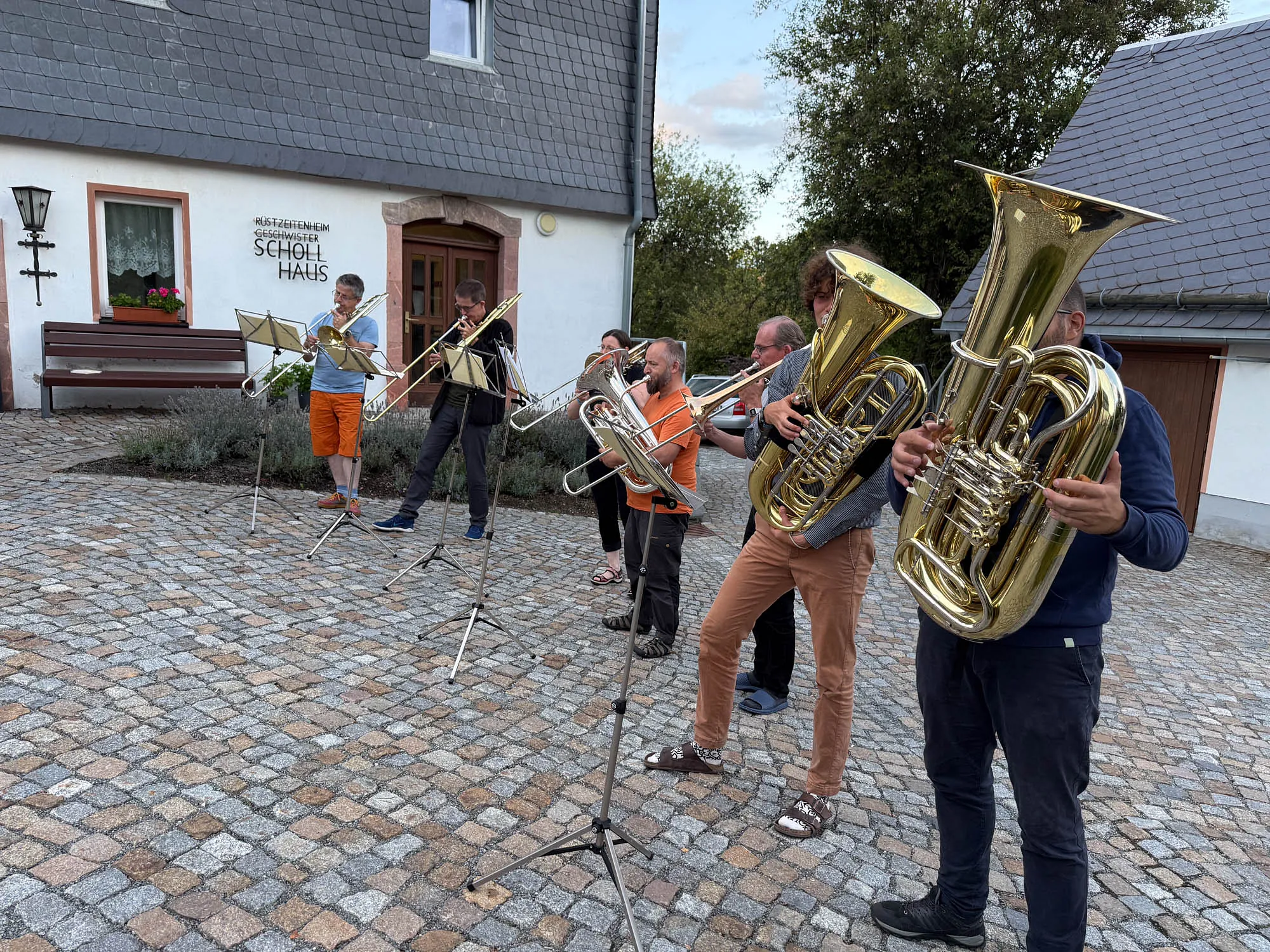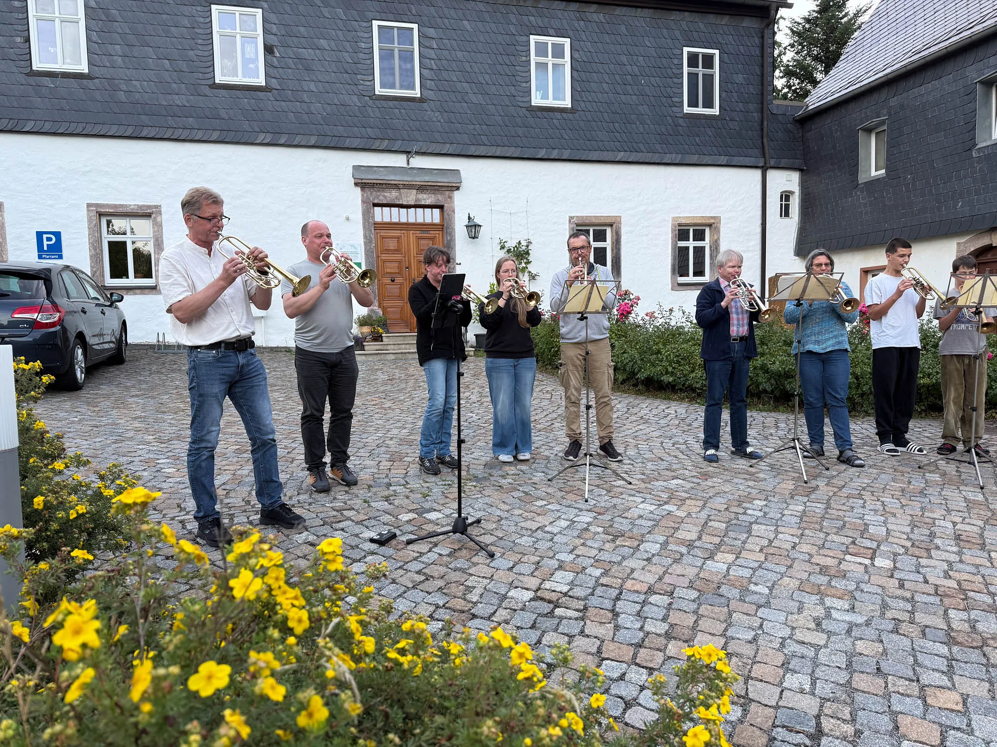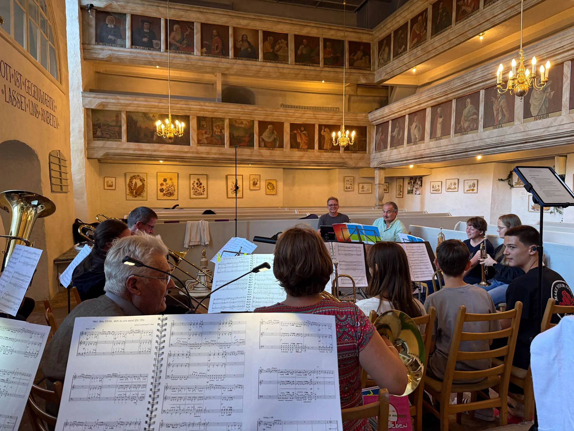 Wir erarbeiten gemeinsam das musikalische Programm für den Bläsergottesdienst, der dann in Hormersdorf und danach in der Christuskirche vom Posaunenchor gestaltet wird.